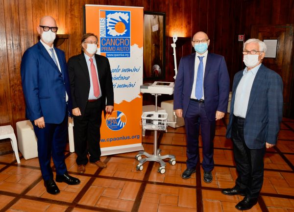 Dopo le premiazioni si è svolta una duplice donazione. Un elettrocardiografo destinato alla struttura complessa di Urologia del presidio di Treviglio dell’ASST Bergamo Ovest, è stato direttamente consegnato al direttore generale dell’ASST, Peter Assembergs, al direttore generale dell’ATS Bergamo, Massimo Giupponi, e al direttore della Struttura complessa di Urologia, Ivano Vavassori. Grazie, invece, alle aziende Tentori Iveco e Columbus Clinic Center, associate a Cancro Primo Aiuto, la Onlus ha potuto far dono al direttore generale di Areu, Alberto Zoli, di un furgone che permetterà di garantire il servizio vaccinazioni sul territorio lombardo e altre prestazioni dell’Agenzia regionale emergenza urgenza.
