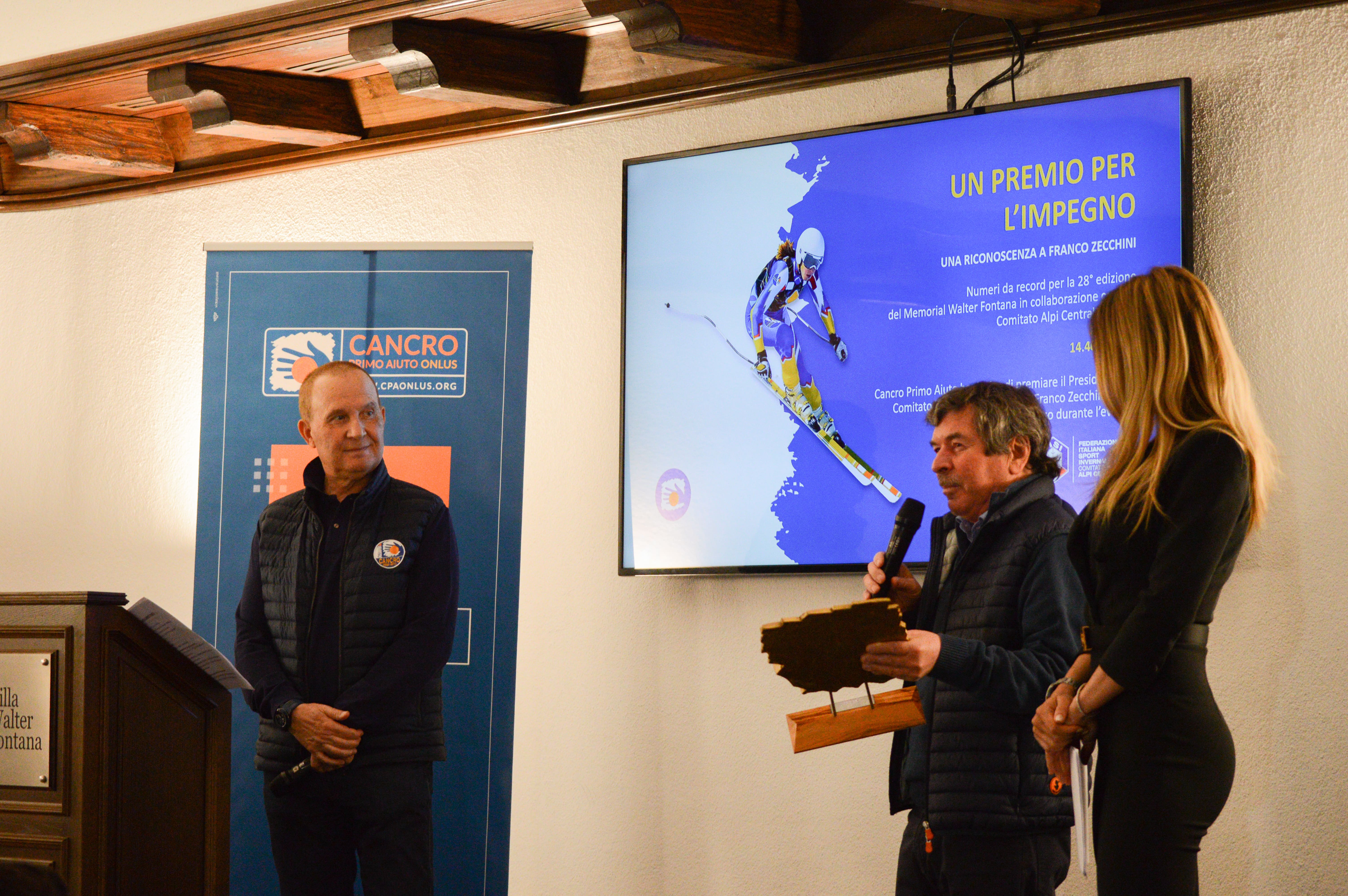 Durante la serata importanti riconoscimenti sono stati consegnati. Cancro Primo Aiuto ha scelto di premiare il presidente FISI Comitato Alpi Centrali Gian Franco Zecchini per il grande impegno e sostegno svolto durante l'iniziativa sportiva del Memorial Walter Fontana che ha raggiunto numeri da record nell'edizione 2021-22.